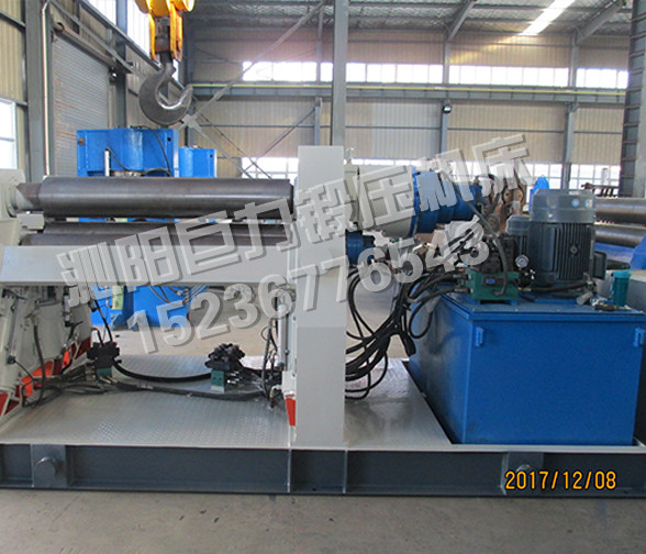 該四輥卷板機(jī)與對(duì)稱三輥卷板機(jī)比較,它可以不借助其它設(shè)備模具,直接予彎板材端部,而且剩余直邊較??;它可以不使板材調(diào)頭,而卷成工件。