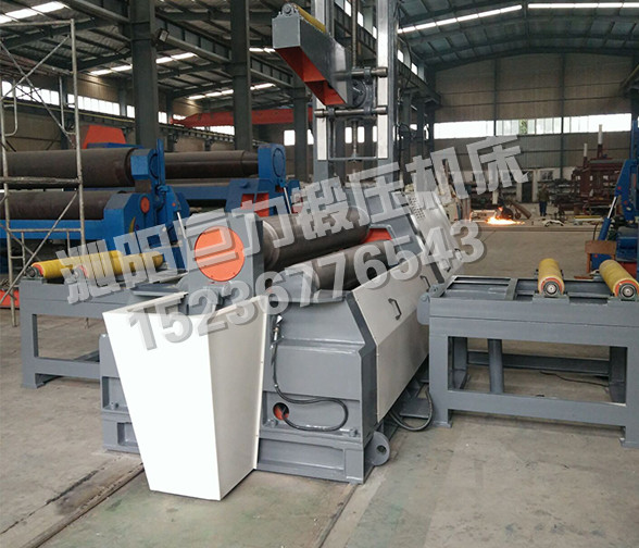 該四輥卷板機(jī)與對(duì)稱三輥卷板機(jī)比較,它可以不借助其它設(shè)備模具,直接予彎板材端部,而且剩余直邊較??;它可以不使板材調(diào)頭,而卷成工件。
